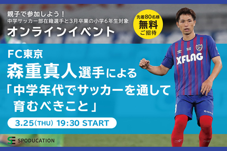サカママを運営するソル・メディアによる、スポーツと教育をテーマにしたWEBメディア「SPODUCATION」にて、FC東京の森重真人選手をゲストに迎えた無料オンラインイベントが開催されます。