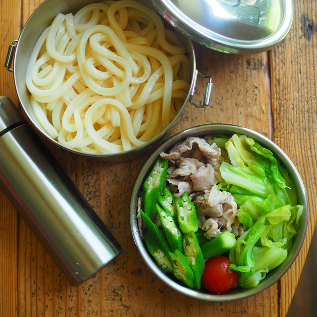 つゆを入れるものは小さいスープジャー、ミニ水筒でも便利ですし、保冷剤代わりもなるので凍らせて持っていくのもおすすめです。今は1人分のつゆも売っているので、状況によって使い分けするのも良いですね。うちのミニ水筒は160mlです。