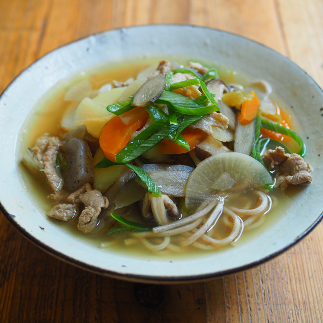 さっぱりとした塩豚汁にはアレンジでお蕎麦を入れるのがオススメです! うどんももちろん美味しいですけど、味噌で作った豚汁ではできないので、ぜひお蕎麦を試してみて下さい♪