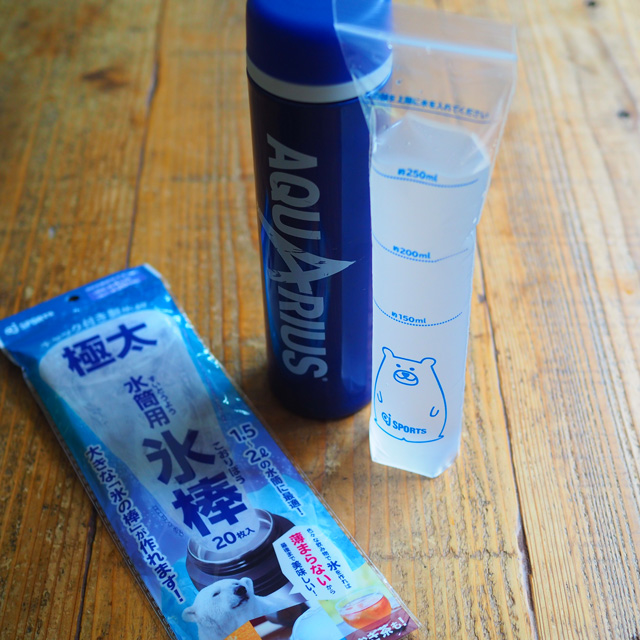 ちなみに、うちではアクエリアスも凍らせて水筒に入れています。