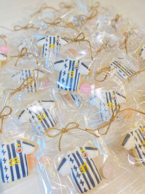 最後にコーチや仲間への感謝の気持ちを込めて、サカママを通して出会った方にお願いして作ってもらったチームユニフォームの背番号入りアイシングクッキーをプレゼントして、たくさんの思い出をくれたチームにさよならをしました。