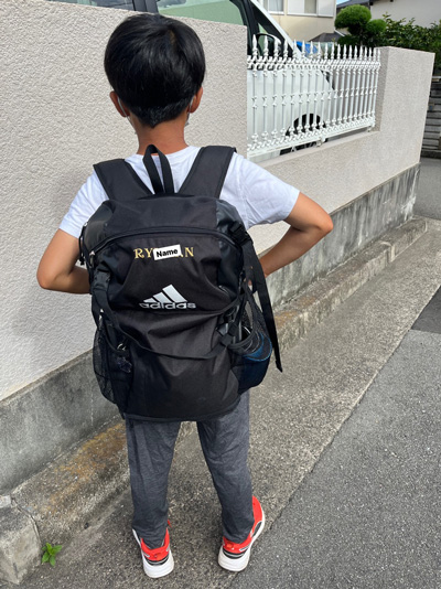 また、私からすると、販売しているお店で名前を⼊れられるというところが魅⼒的でした。刺繍⽷の⾊や⽂字を好きに選べるので、たぶん世界に1つしかない︕︖オリジナルのバッグが仕上がったと思います。これで息⼦の『⼈とかぶらない』という条件もクリア︕