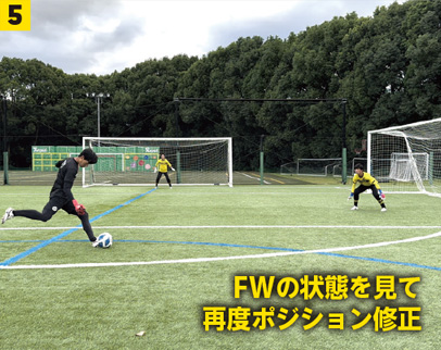 3FWのボールの置き所を見て再度ポジションを修正。