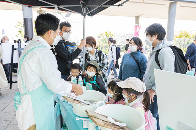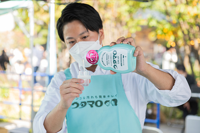 また、ウタマロスタッフさんに直接お洗濯の悩みを相談できる「ウタマロお洗濯相談会」も実施。ウタマロ石けんの実演では、見る見る泥汚れが落ちる様子に拍手がわくことも。ウタマロのすごさを改めて目にできるのも、サカママイベントならではです。