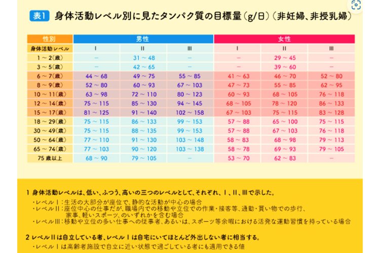 タンパク質の必要量は下の表のようになっています。