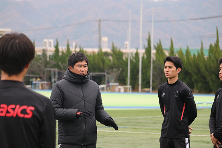 「全員で勝つサッカー」を掲げる中務雅之監督。