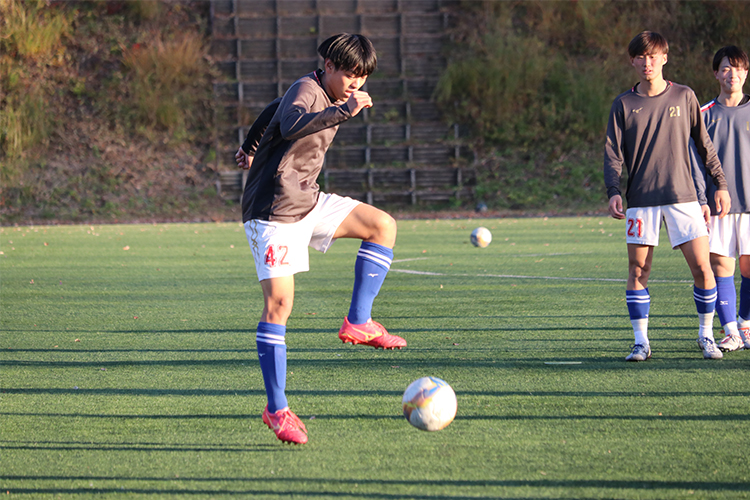 「チーム一丸となって県予選を準決勝まで失点をゼロで抑えられたことは収穫だったと思っています。ただ決勝では集中が切れて失点してしまったので、選手権では集中して臨みたいと思います。プリンスリーグで前期は一勝もできなかったのですが、それで投げ出すのではなく、一人ひとりが向き合って勝つためにどうするかを考えた結果がインターハイベスト8につながったのだと思います。選手権では全員攻撃全員守備を徹底して、個々の良さが出れば結果につながると信じています」