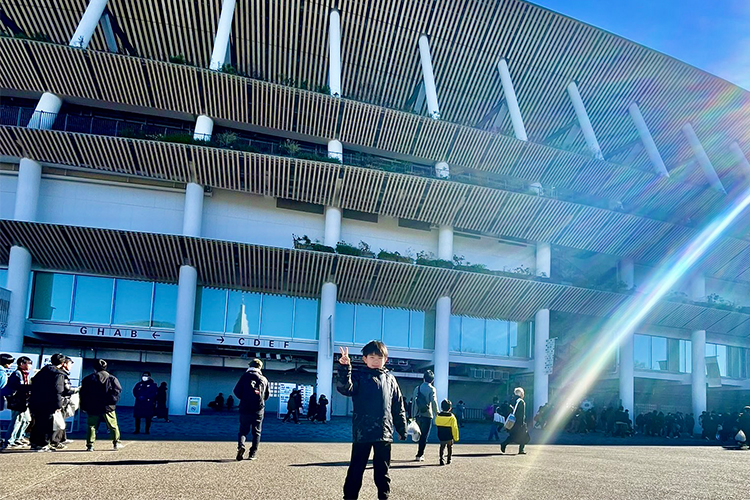 満員に近い観客がいる国立競技場の雰囲気は素晴らしく、選手たちの一つひとつのプレイに会場全体が湧き立っていました。その雰囲気が少年のココロをグッと掴んだのだと思います。サッカーがいかに人々を魅了するスポーツなのかということを、改めて感じました。