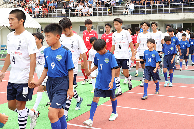 ホーム開催のプレミアリーグでは毎回、地元の少年団を入場時のエスコートキッズに招待。試合前のウォーミングアップも間近で見学しており、子どもたちは目を輝かせている。