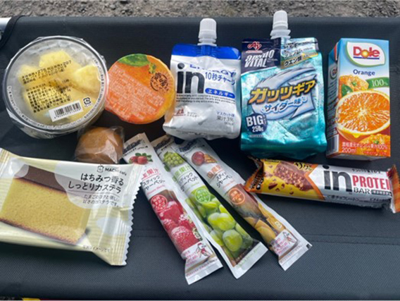 試合中の補食はゼリー、羊羹、おにぎり、チーズ、カステラ、焼き芋、干し芋などを食べているそうです。
