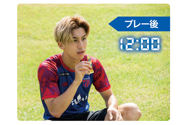 中学時代(FC東京U-15深川)から飲んでいるのでアミノバイタル歴は相当長いです(笑)。プロになってからは毎日飲んでいます。すっきりとしたグレープフルーツ味で本当に飲みやすい!アミノバイタル® プロテインも練習後と1日の終わりに飲むようにしています。