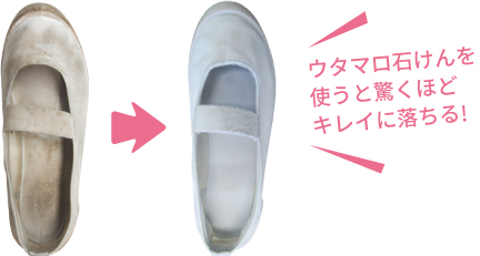 ウタマロリキッドは、シャンプーなどにも使われているアミノ酸系洗浄成分主配合です。手肌と環境にやさしい成分ですが、お子さんの肌との相性もあるので、荒れてしまった時はおやめください。また、履いたまま一方向にこするより、手で様々な方向にもみ洗いする方が汚れ落ちはいいですよ。