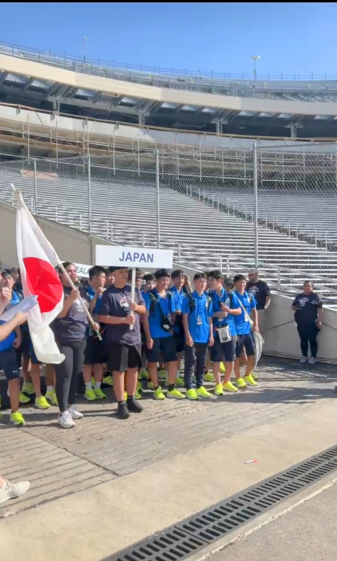 息子所属のチームはU-9のカテゴリーなので、今年はまだプレイヤーとしての参加はできませんでしたが、違った形で大会を堪能することができました。まずは最年長カテゴリーにあたるU-19男子のオープニングマッチへボールボーイとして参加する機会をいただきました。